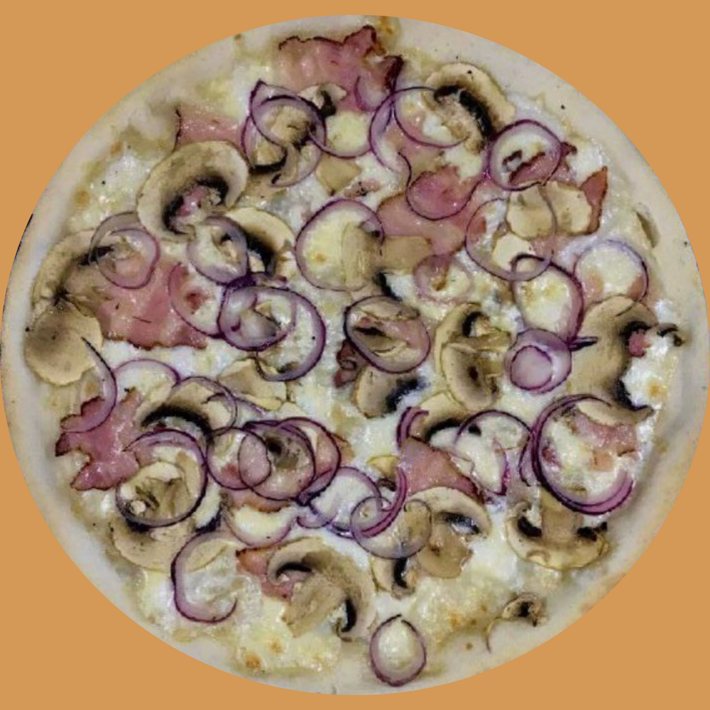Ферментоване тісто, томатний соус, сир Моцарела, буженина,гриби шампіньйони